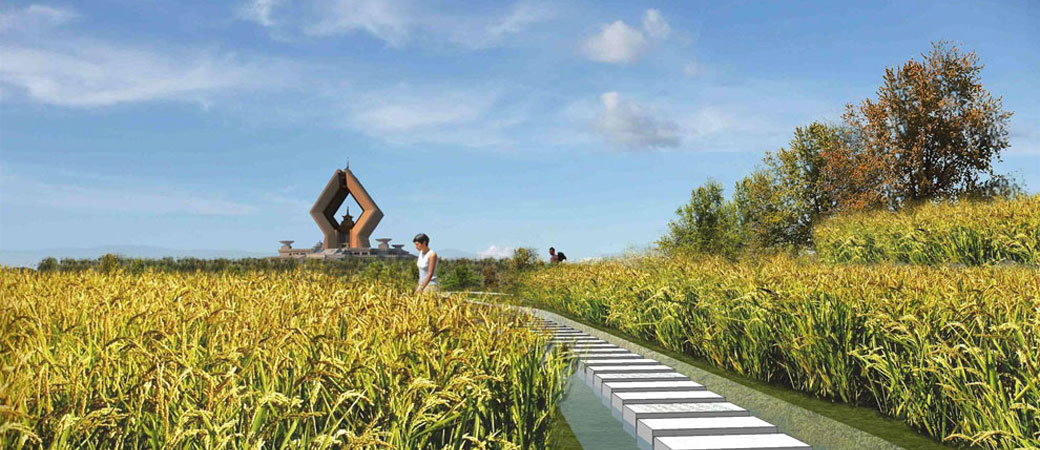 The internationally prominent Famen Temple project is to be developed around the 1,800 year-old Famen Buddhist Temple, the only Buddhist temple in the world which owns and preserves a genuine bone relic of Buddha and is, therefore, a supremely holy place for Buddhists around the world. The site area is 1,240,000 sqm and the total built floor area is 300,000 sqm. The project includes a number of mediation lodges, several museums and two hotels in addition to the World Meditation Centre and a forest.