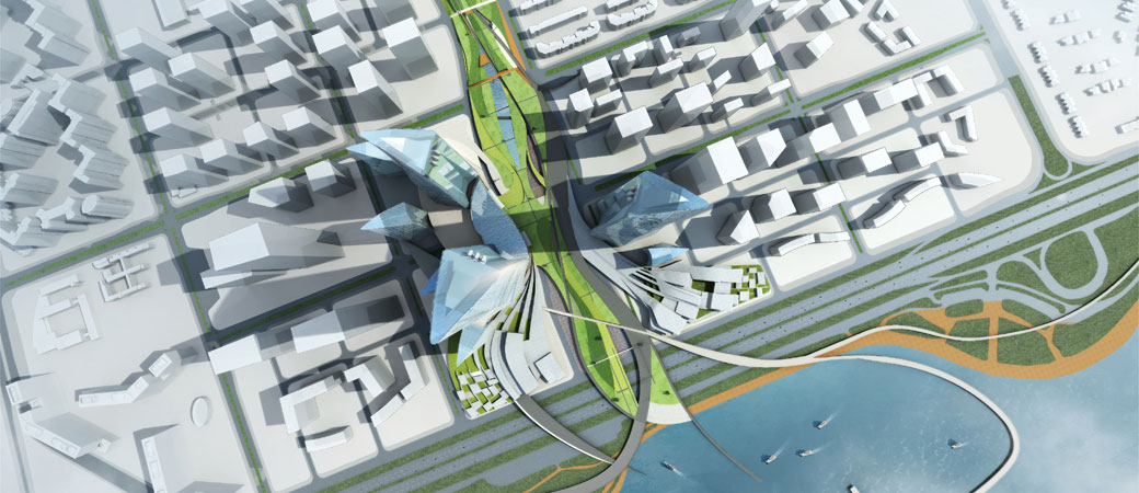 The aim is to create a major new international business hub for Southeast Asia, complete with arts and business schools. The project has a land area of 35.2 hectares and a total of 1,500,000m2 building floor area. Three super tall buildings, ranging from 450m up to 680m, are the core of the project. OAC has placed a linear park along the site to harmoniously connect the lake and Shenzhen Bay. Fundamental to our concept, and contrary to the trend of creating super-human scaled urban environments, is the creation of an urban centre that provides spaces and buildings on a human scale by means of vertical and horizontal links between services, retail areas, commercial spaces and an eco-friendly public transport system. Two cultural complexes (business and an artistic village) are located on the seafront.